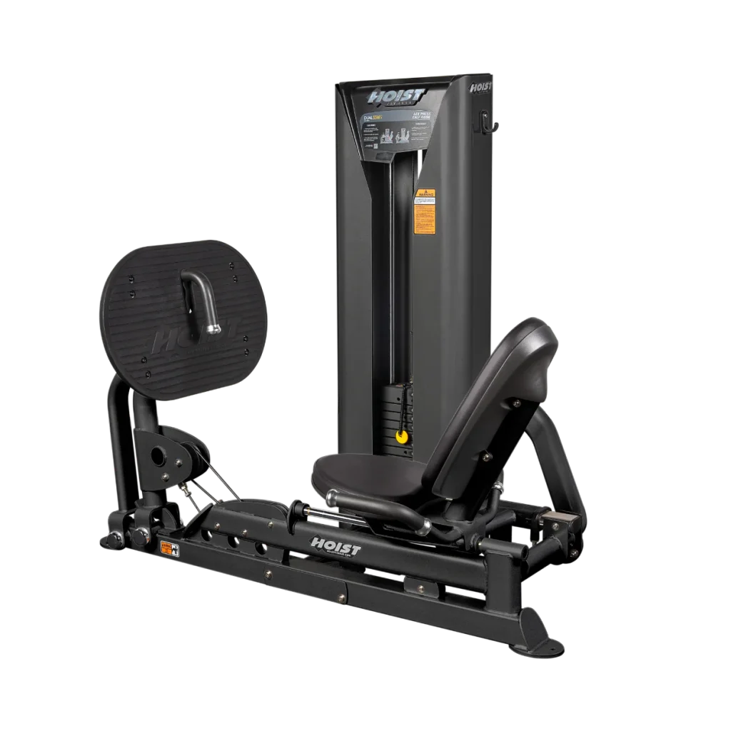 The HOIST® Leg Press/Calf Raise comes equipped with an oversized, no-slip, oval foot plate providing multiple foot positions for both leg press and calf exercises. Eleven linear seat adjustments allow for varying leg lengths, while our step-through design makes it easy for users to safely mount and dismount.